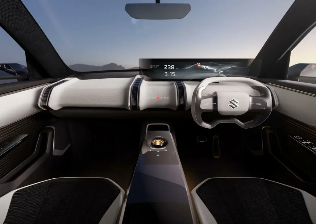 लोकांच्या मते सुझुकीने ही कार टोयोटाच्या bz3X इलेक्ट्रिक कॉन्सेप्ट मॉडेलच्या प्लॅटफॉर्मवर तयार केली आहे. त्यामुळे यात टोयोटाची झलक पाहायला मिळते. सुझुकी eVX मॉडेलचे आतील भाग अतिशय फ्युच्यरिस्टित असणार आहेत. यात स्लिक डॅशबोर्ड आणि मोठी फ्री स्टँडिंग डिजिटल ड्युअल स्क्रीन असेल. यापैकी पहिली इन्फोटेनमेंट सिस्टिम म्हणून वापरली जाऊ शकते.